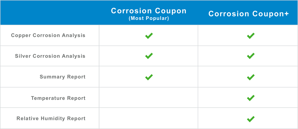 Corrosion Coupons have copper and silver metal strips. These metals represent the sensitive electronic components you rely on when exposed to the air in your environment. Over the course of a 30-day installation period, any corrosive air present will cause build up on the surface of these metal strips. After 30 days, the coupon is sent back to our lab for analysis where our scientists work to determine the air quality classification of the environment. You will receive a detailed report and a results-based solution to help determine next steps.